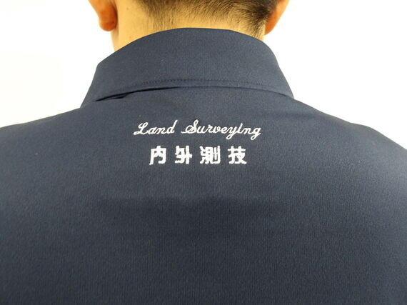 夏に着るポロシャツを新調しました。環境に配慮した廃PETボトルを原材料とした生地を素材に選び、落ち着いたカラーのネイビーで、背中には得意分野である地上測量を意味するLand Surveyingと刺繍しています。これからも「感謝の気持ち、誠実な対応で、期待以上の成果を提供する」をモットーに、社員一同頑張って参ります。